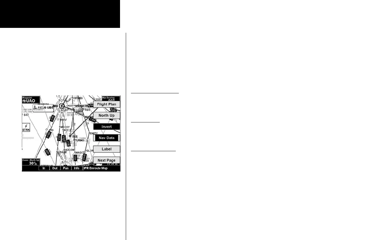 of options available for the IFR mode include Flight Plan, map orientation, Invert, and turning labels on or off.