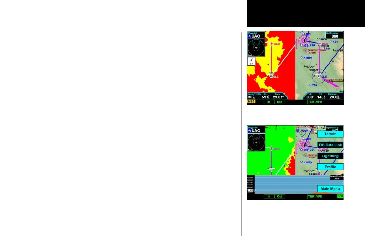 cross-section of the terrain just below the aircraft’s current track. Obstructions are not shown on the profile