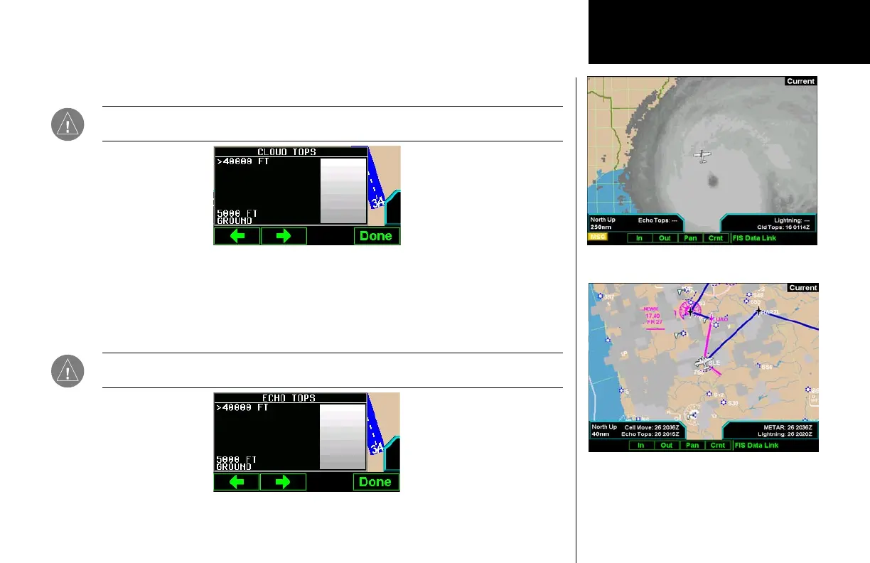 can not be displayed at the same time. Selecting Echo Tops automatically disables Cloud Tops.