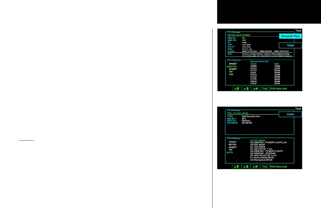 minimum and maximum altitude, and Notam ID. If TFR text extends beyond the page size, no scrolling is