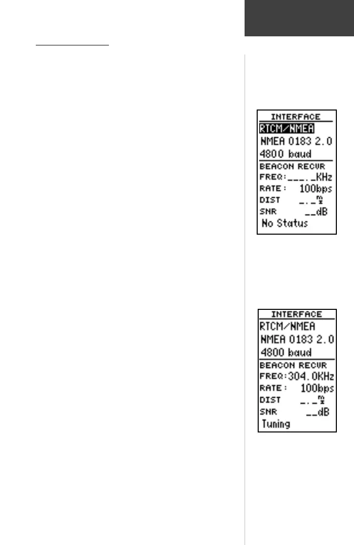 GARMIN GPS unit provides a Beacon Receiver Setup Page