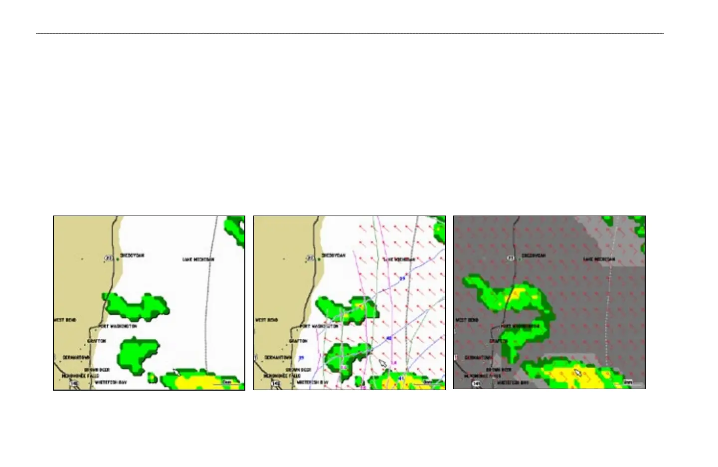 There are three preset weather displays, General, Sea State, and Storms. The name of the currently displayed preset is shown in the lower left corner of the screen.