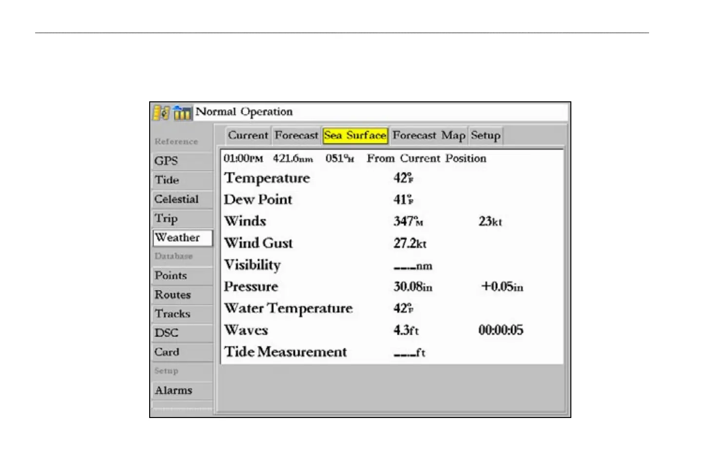 MAIN MENU > WEATHER TABSEA SURFACE