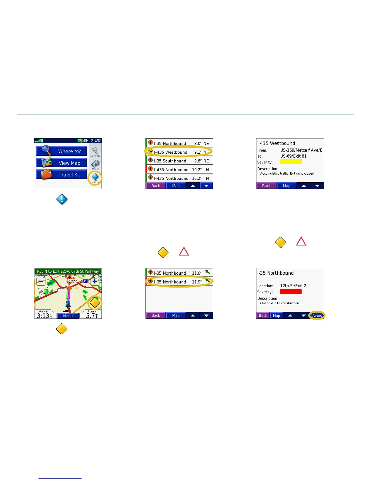 Garmin 300 - Viewing Traffic Events; Avoiding Traffic