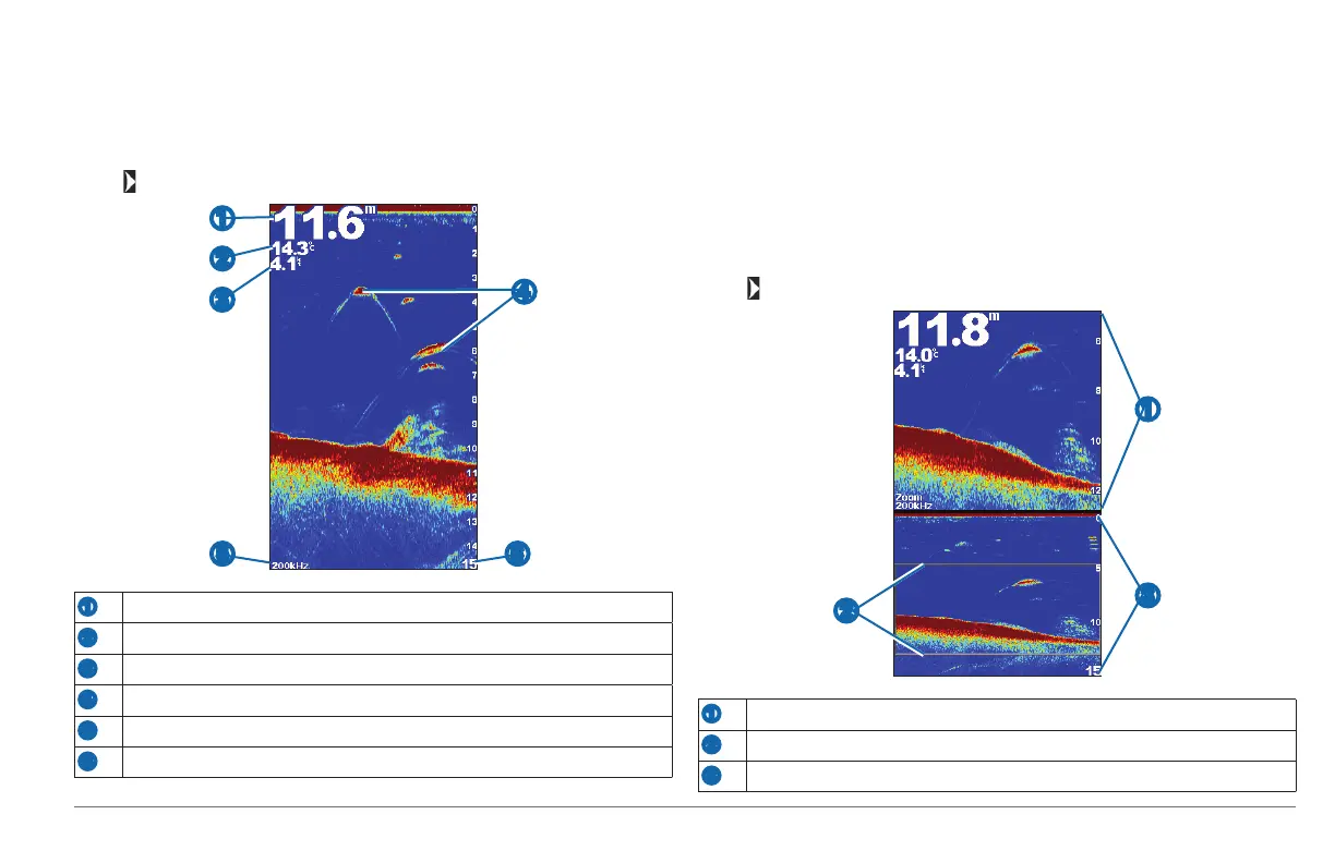 The split-zoom sonar view shows a full-view graph of sonar readings in the bottom