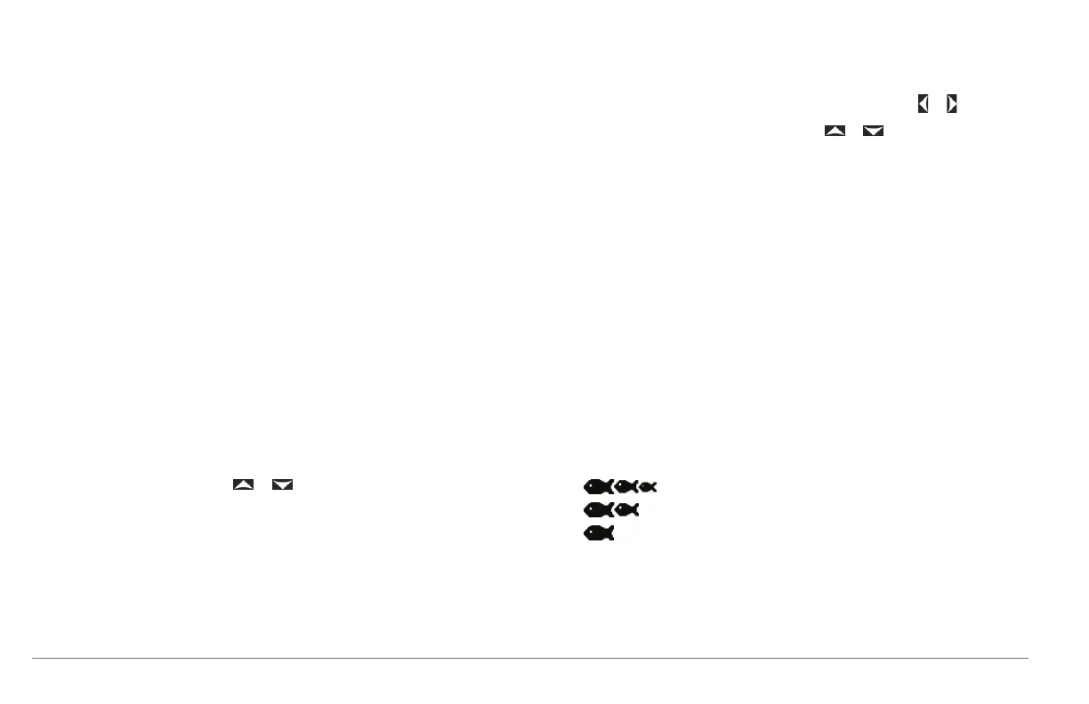 Fish: Sets an alarm to sound when the device detects a suspended target.