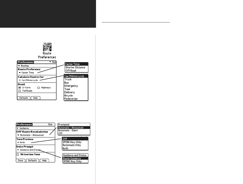 route guidance prompts. When you set preferences for an individual