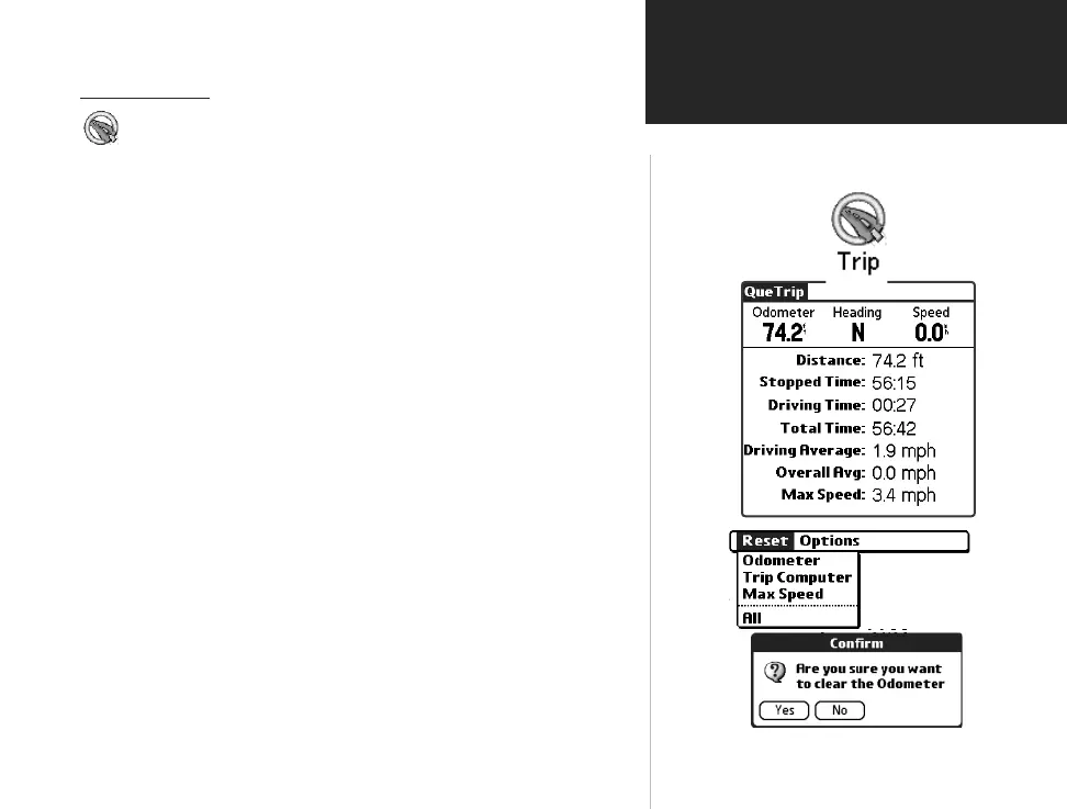 2. Tap the QueTrip Menu icon to display the four reset options: