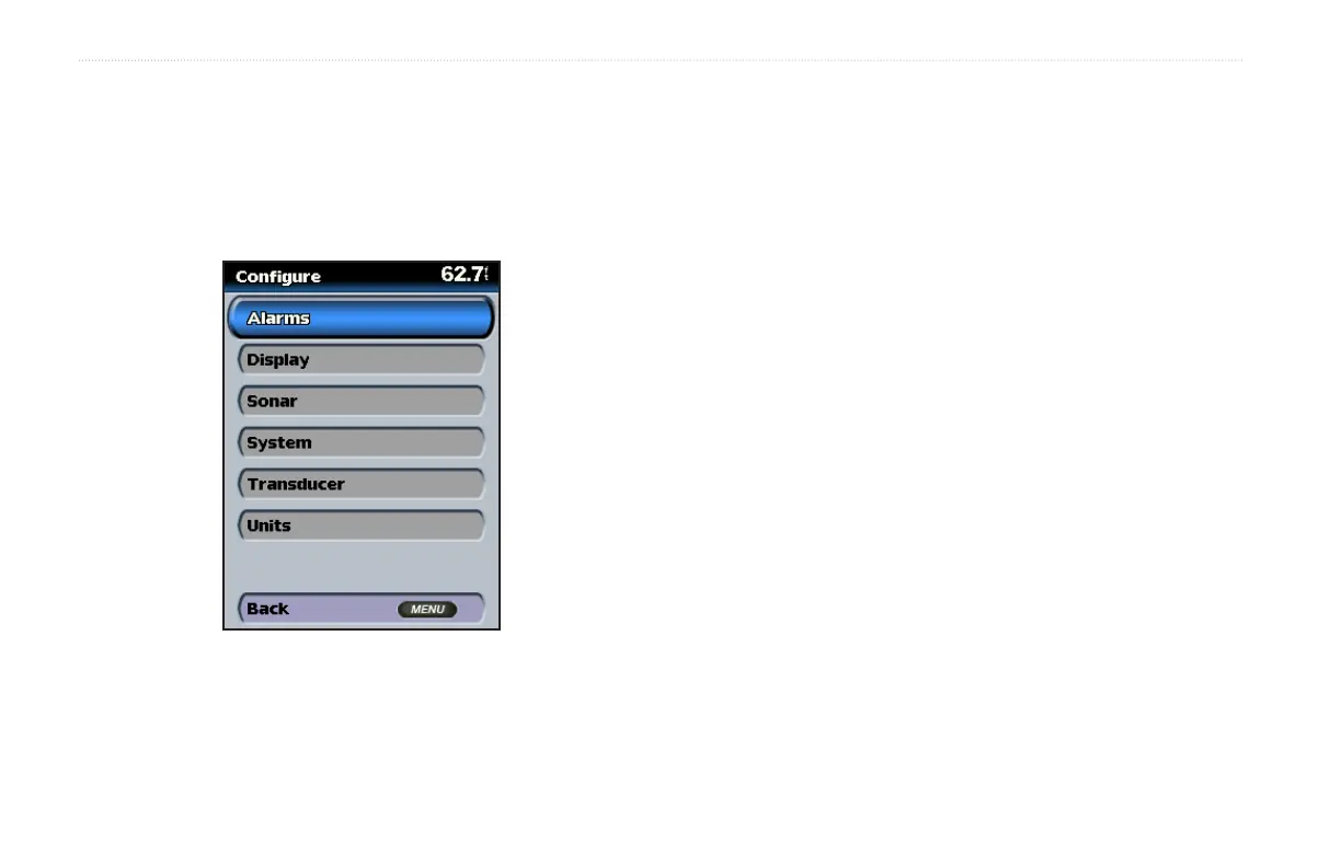 Fishnder 400C. From this screen, you can dene and adjust settings