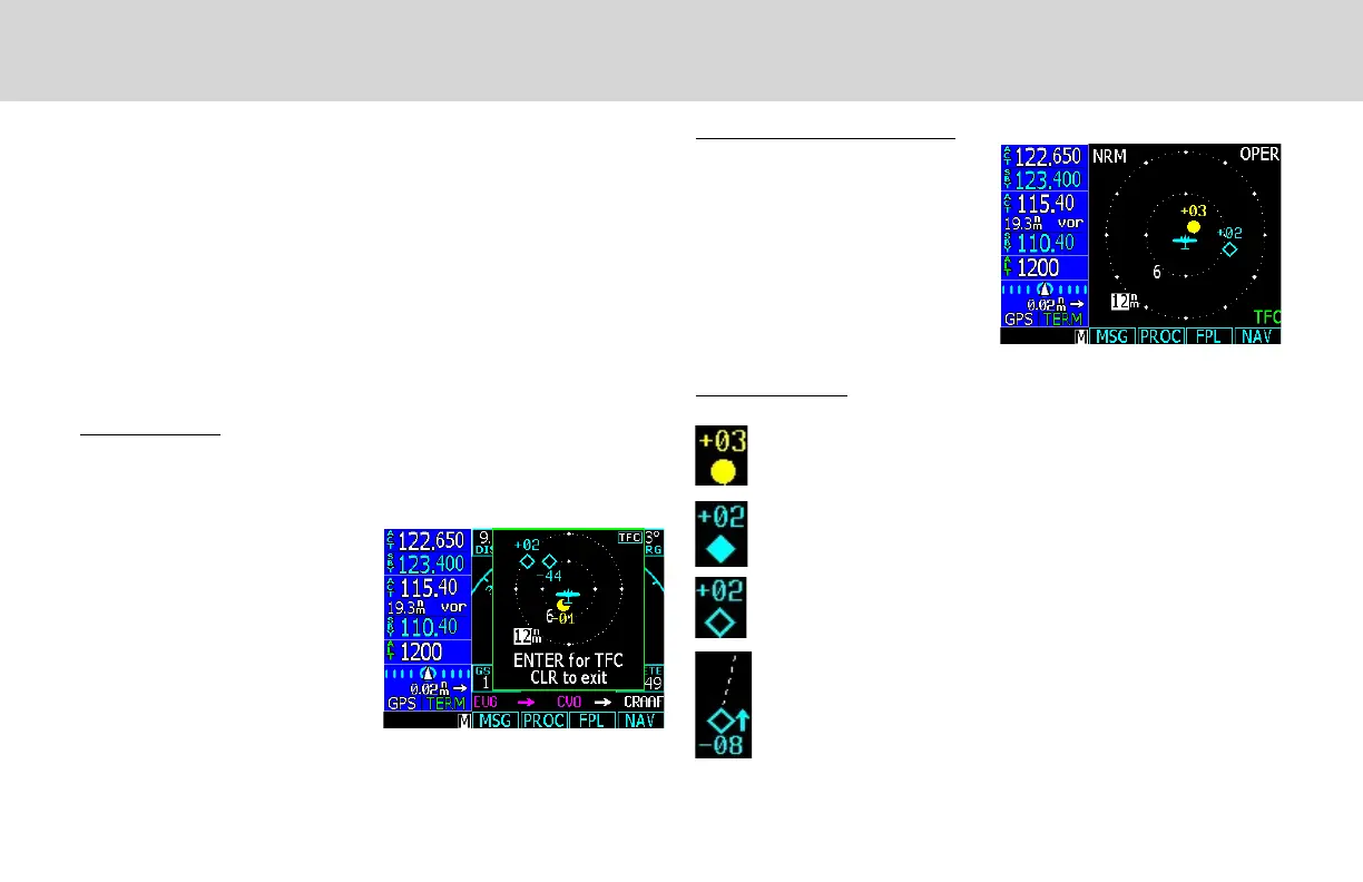 A small Traffic window will “Pop-Up” when a Traffic Advisory (TA) occurs. The