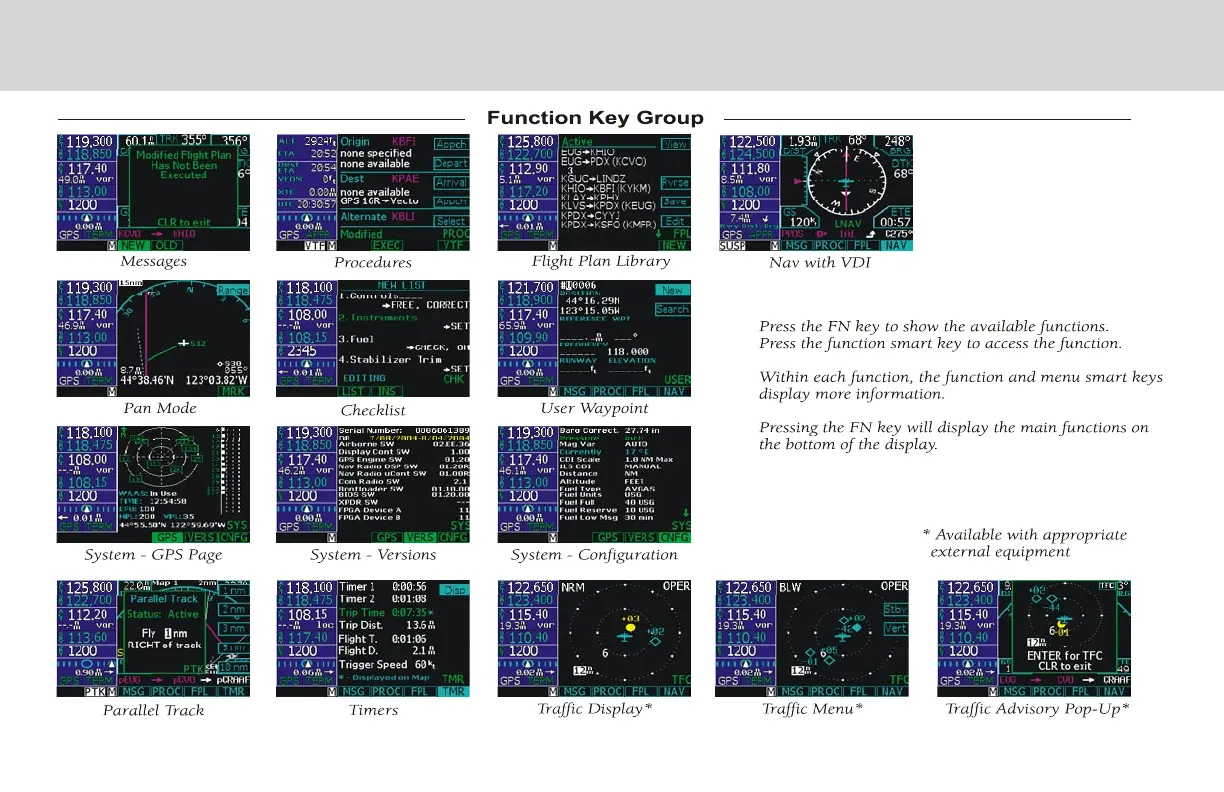 Garmin 480 - PAGE SELECTION (Continued); Parallel Track; Timers; Traffic Display