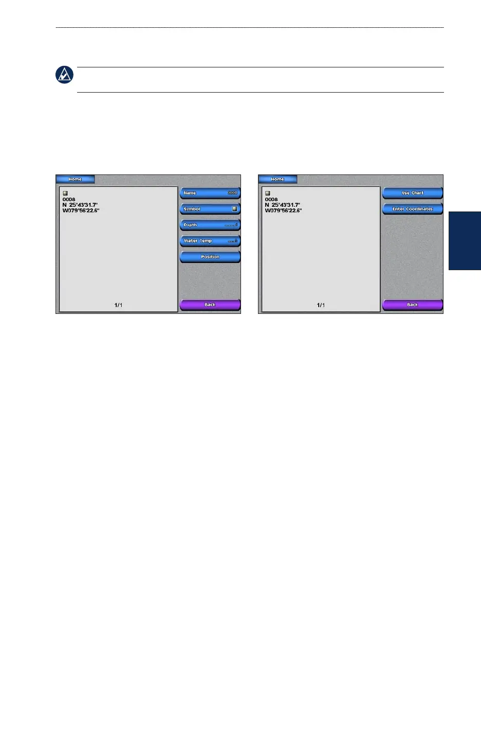 4 Touch the waypoint attribute you want to change (Name, Symbol, Depth, Water Temp, or