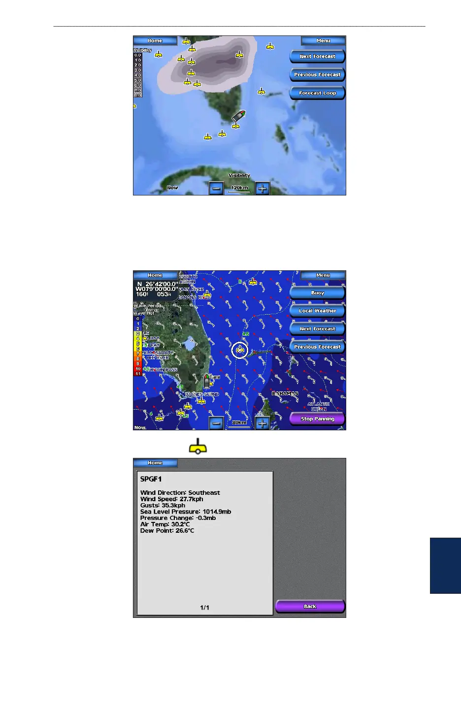 To view a buoy report, touch a buoy on the screen. Touch Buoy.
