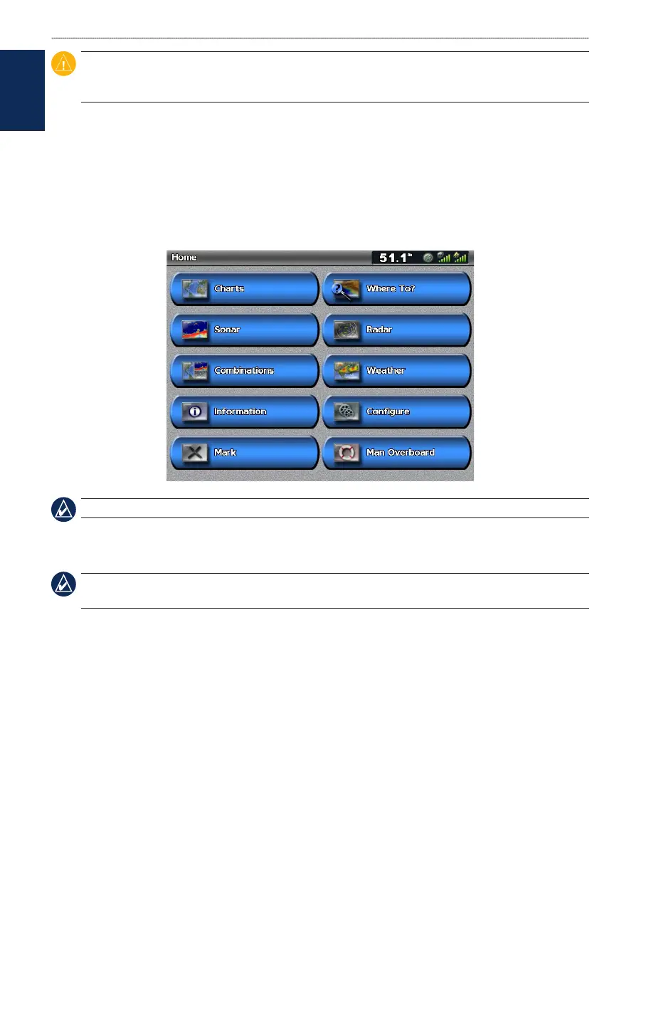 Radar—sets up and displays radar (only available if the unit is connected to a radar module)