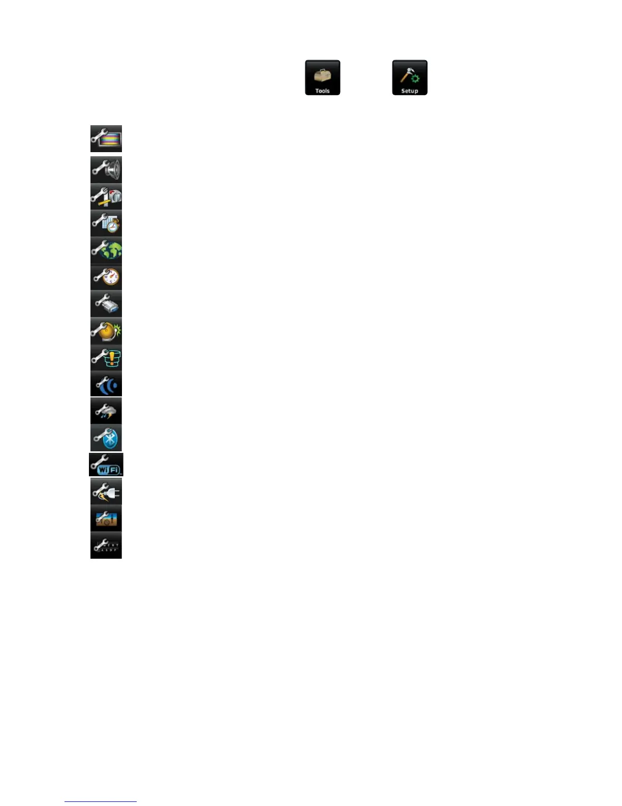 level Setup Icons. Touch these third-level icons to perform the associated function: