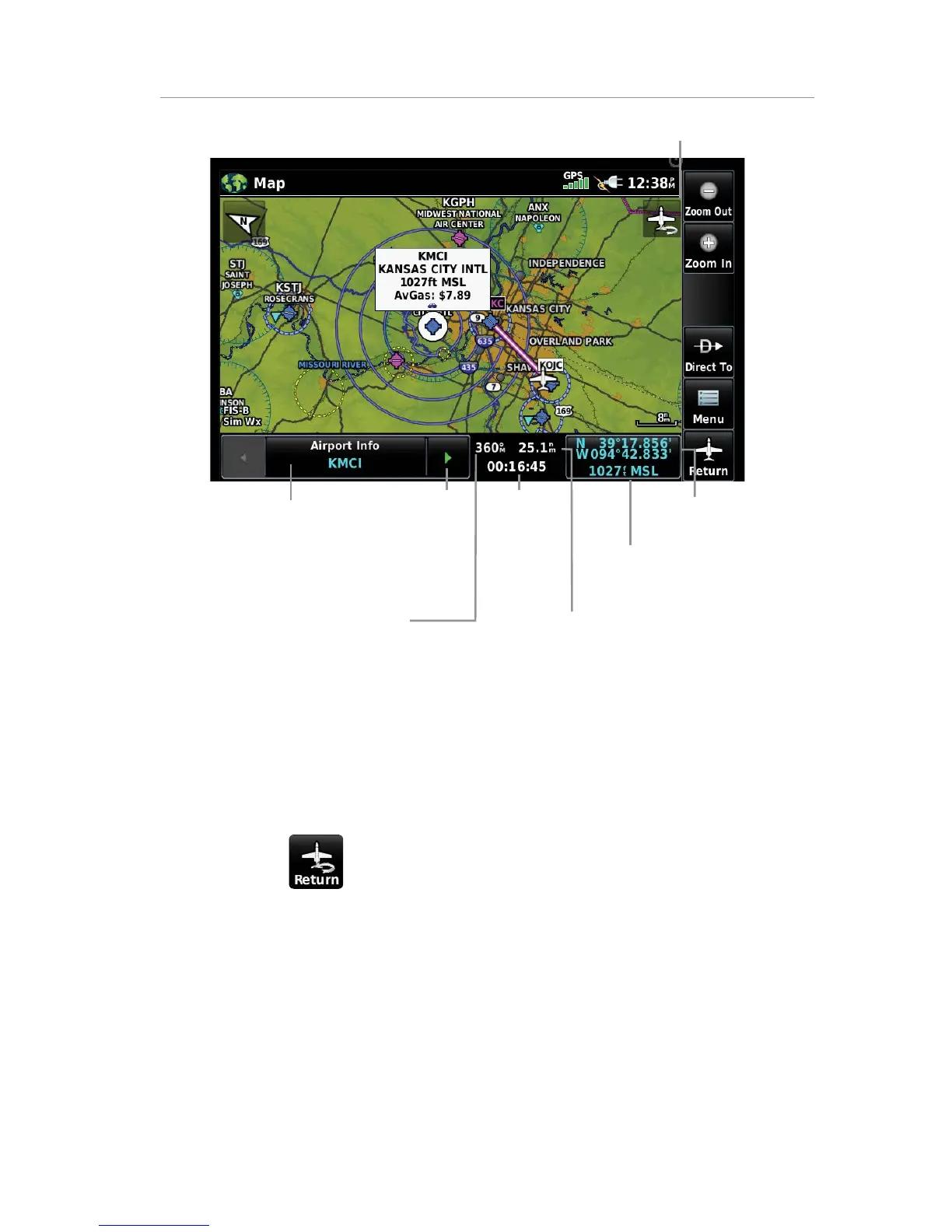 While viewing a Map Display, touch anywhere on the map to activate the