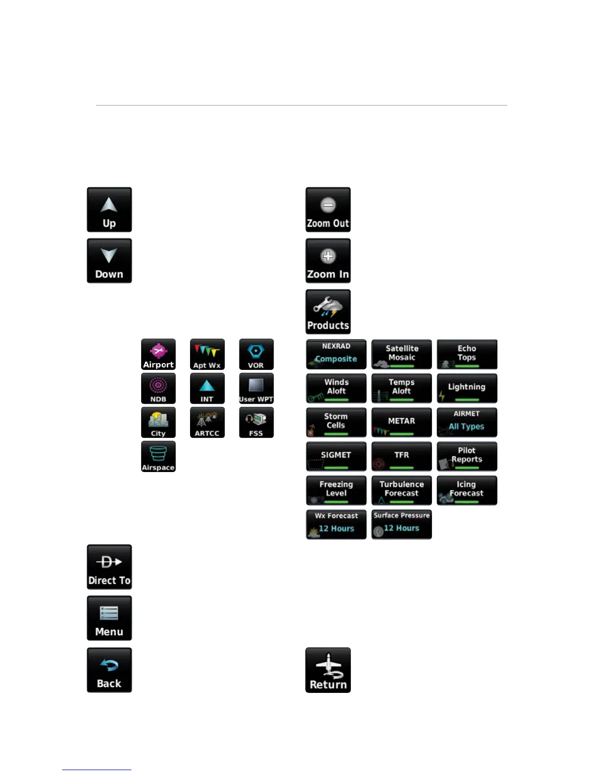 Garmin 660 - Operation; Dedicated Page Icons