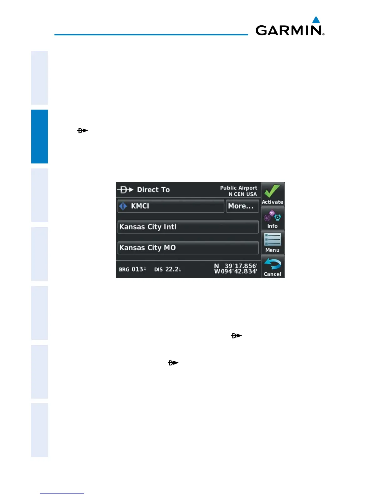 Entering a waypoint identifier, facility name, or city as a direct-to