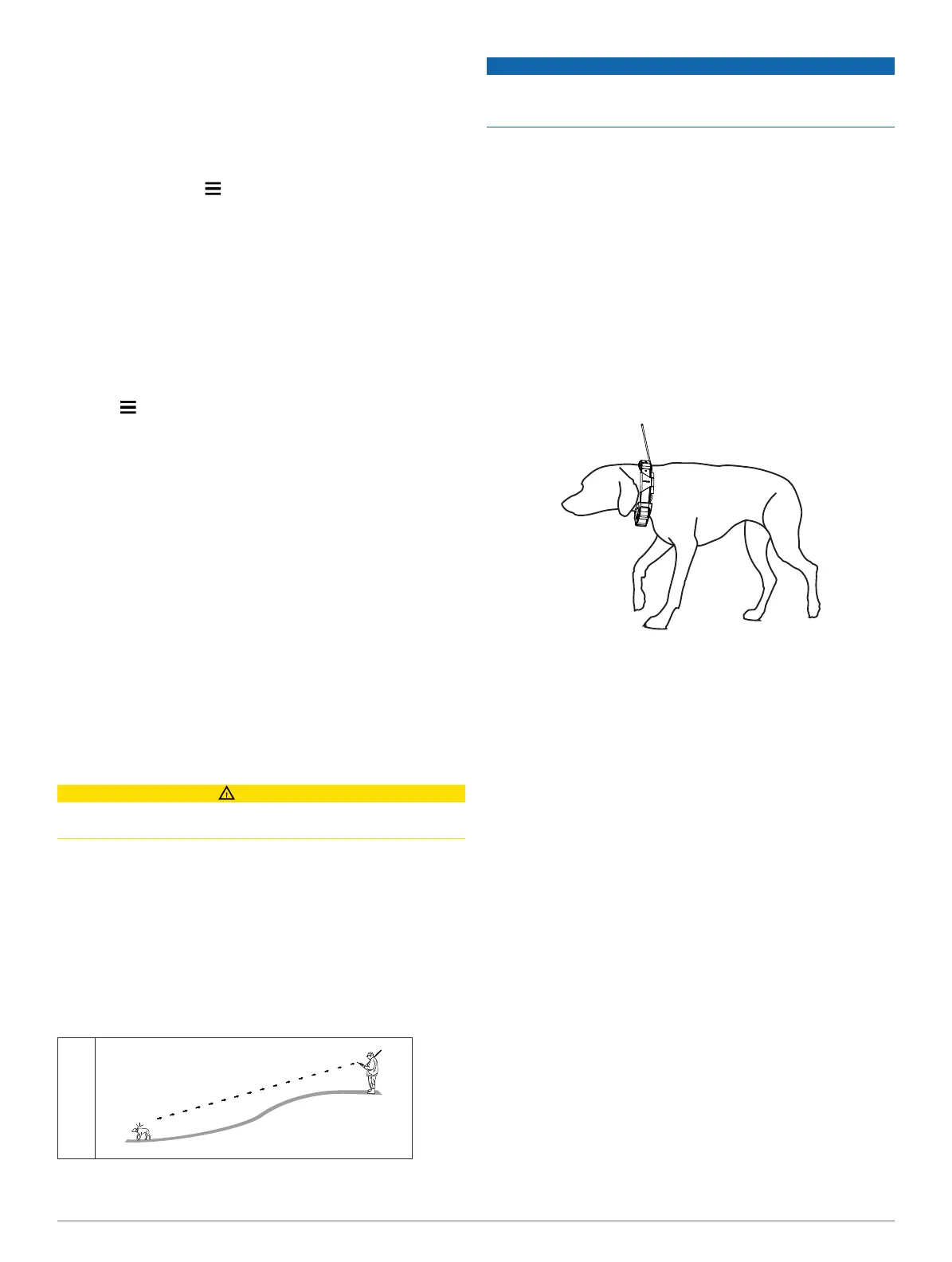 signals. Keeping an unobstructed line of sight between the collar and handheld device produces the best communication signal.