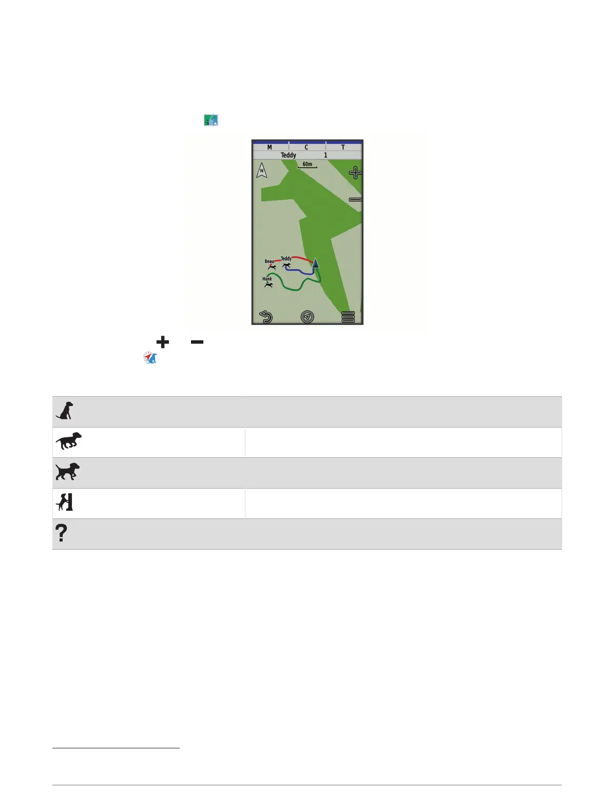 TIP: You can select to track the dog using the dog tracking compass (Dog Tracking Compass, page14).