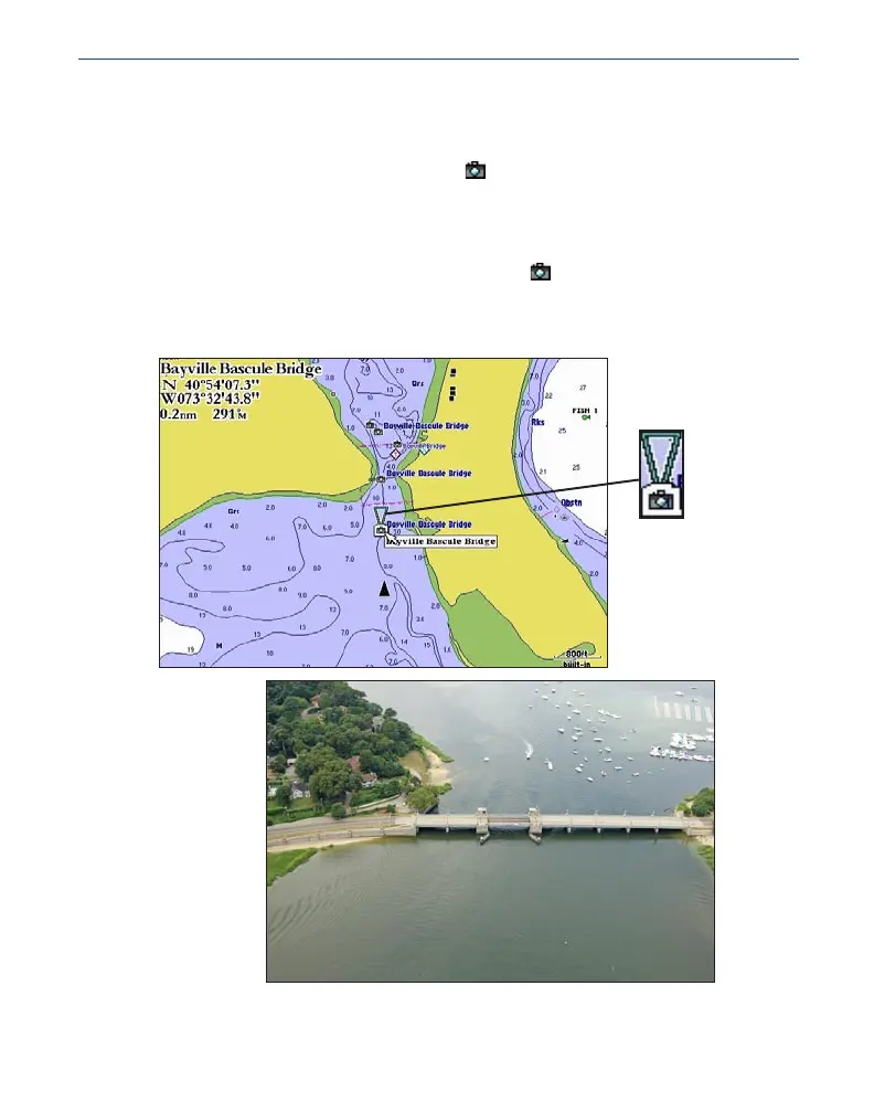 Place the unit’s map pointer on a camera icon ( ), and press ENTER. An