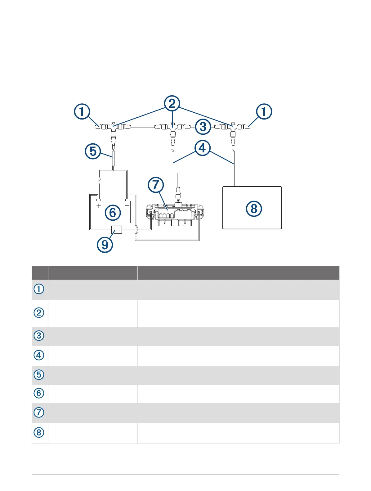 This diagram shows a sample installation which you can scale to apply to the NMEA 2000 network on your
