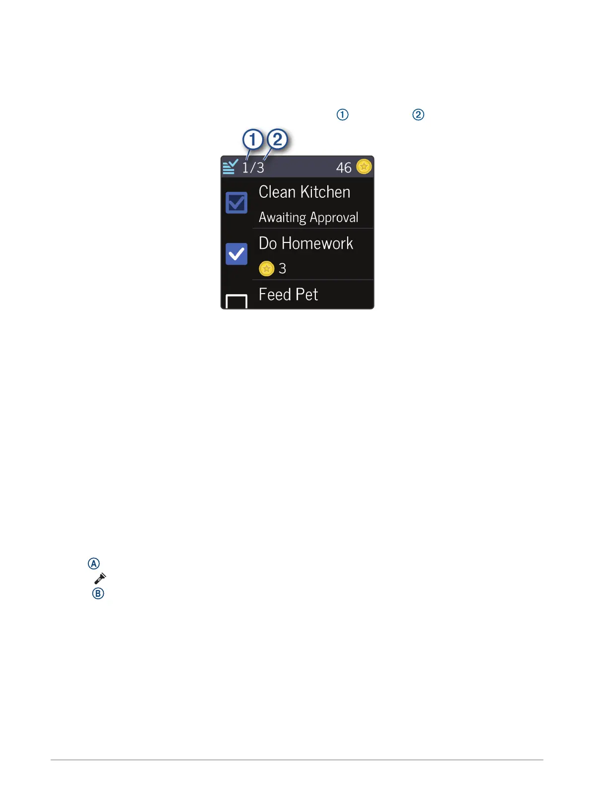 Before you can use the chores widget, you must be assigned chores in the Garmin Jr. app (Assigning Chores,