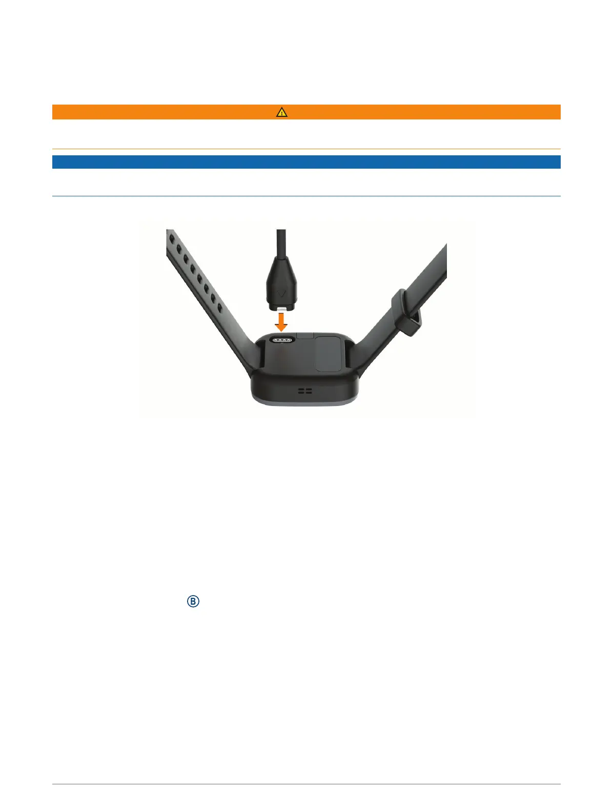 • Connect the charger securely to the watch to charge it using the USB cable (Charging the Watch, page20).