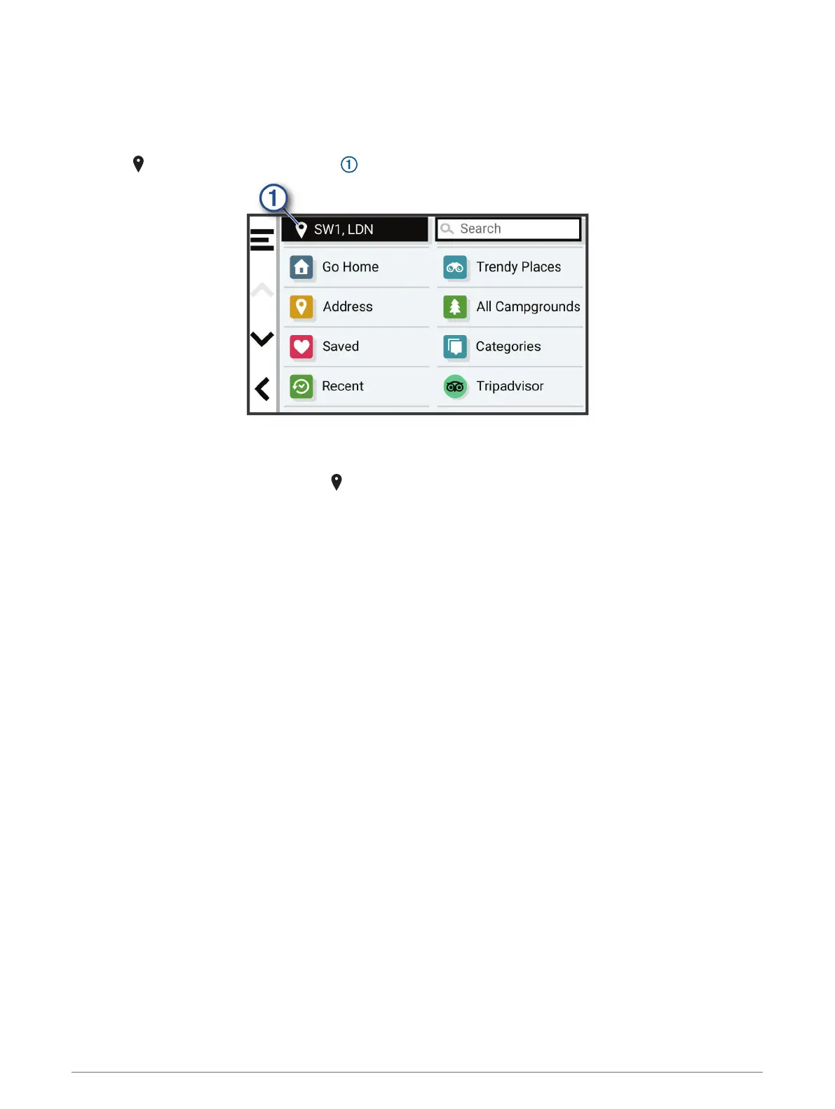 The selected search area appears next to . When you search for a location using any of the options in the