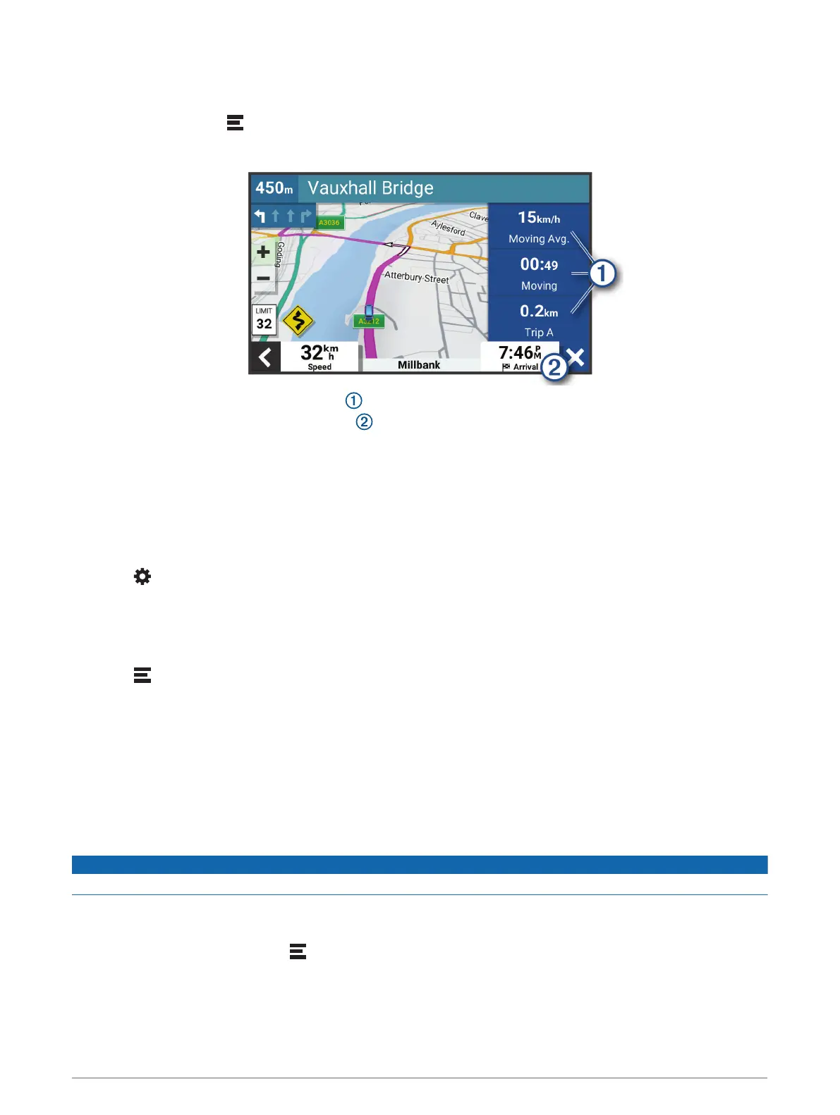 The trip information page displays your speed and provides statistics about your trip.