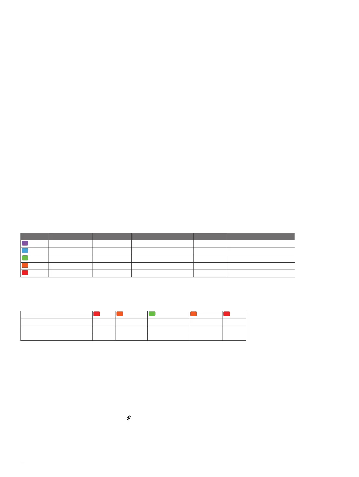 experienced or slower runners. The data values in the green, blue, or purple zones are typical for more experienced or faster