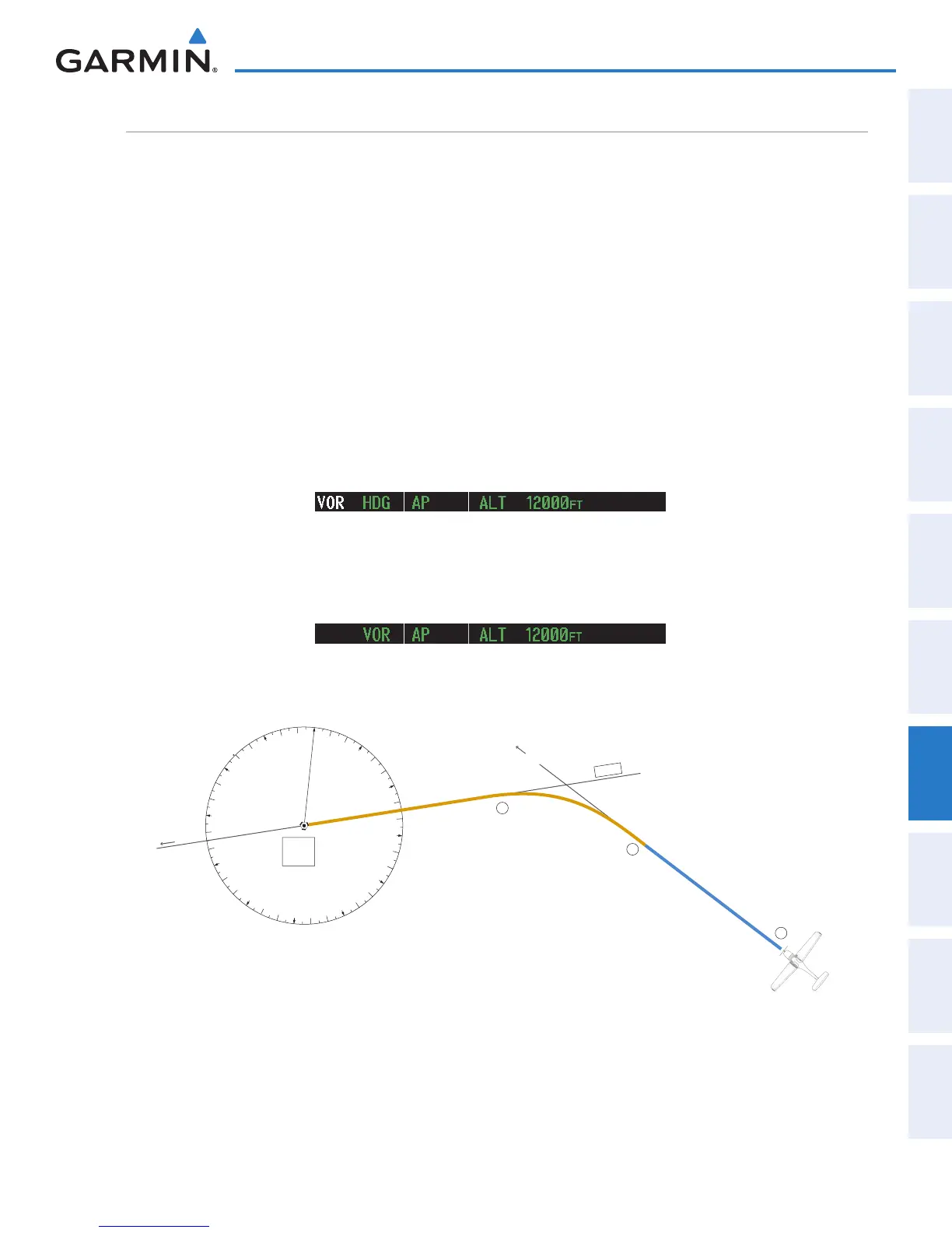 Mode and the ‘VOR’ annunciation flashes green. The autopilot begins turning to intercept the Selected