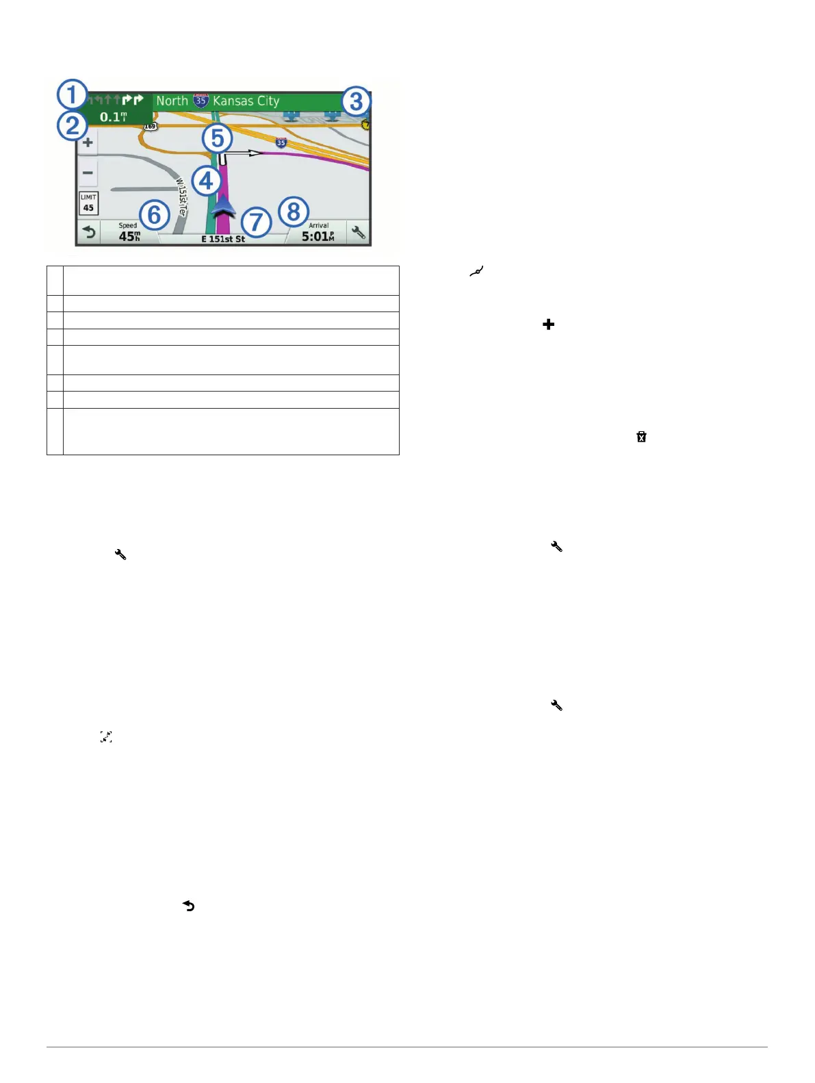 • To view upcoming turns and directions as you navigate,