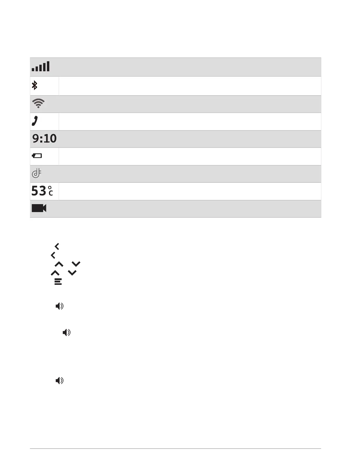 on the device. You can select some icons to change settings or view additional information.