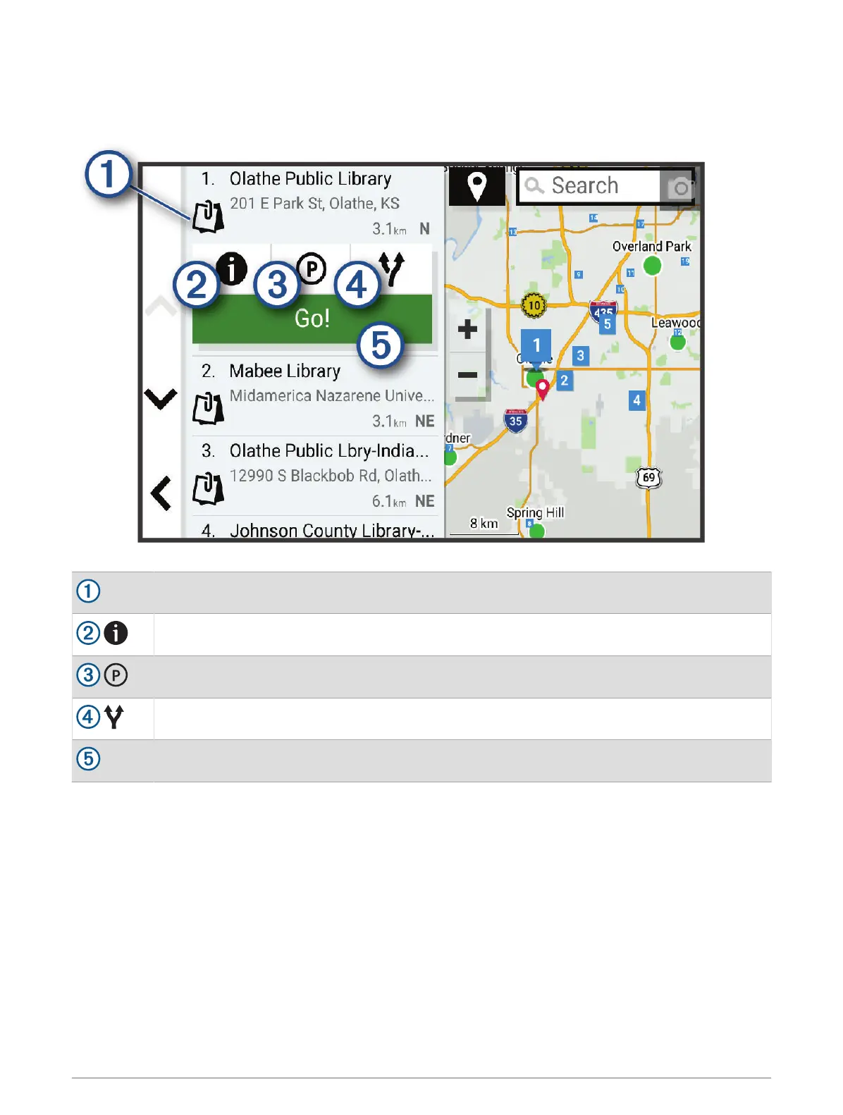 The location search results appear in a list, with the nearest location at the top. Each numbered location also
