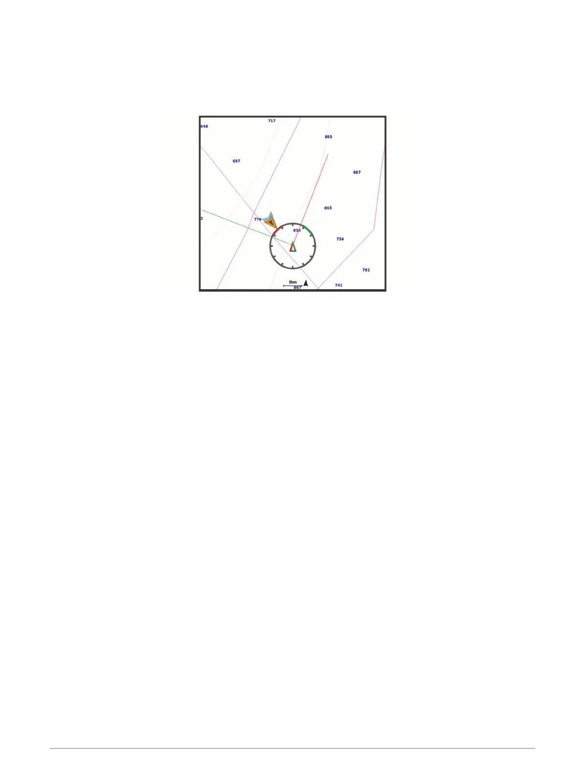 When in sailing mode (Setting the Vessel Type, page10), you can display laylines on the navigation chart.