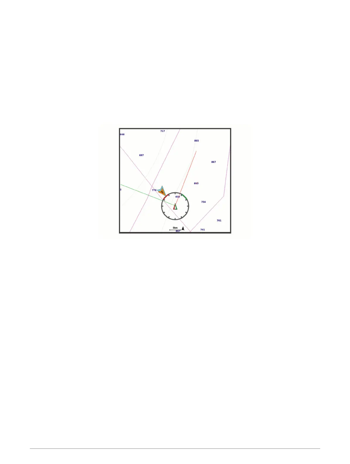 When in sailing mode (Setting the Vessel Type, page10), you can display laylines on the navigation chart.