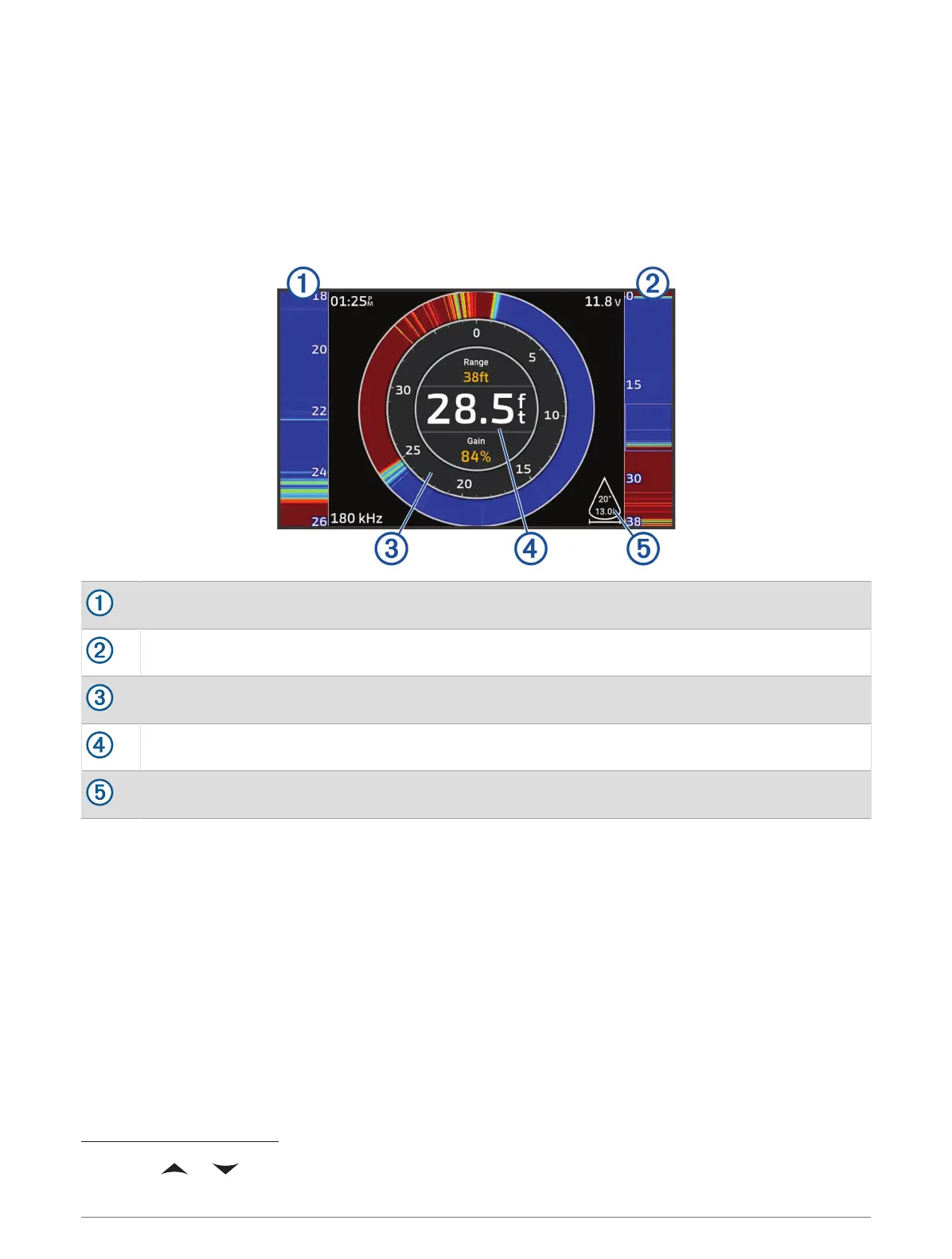 ring. Sonar information flashes on the ring when it is received at the depth indicated.