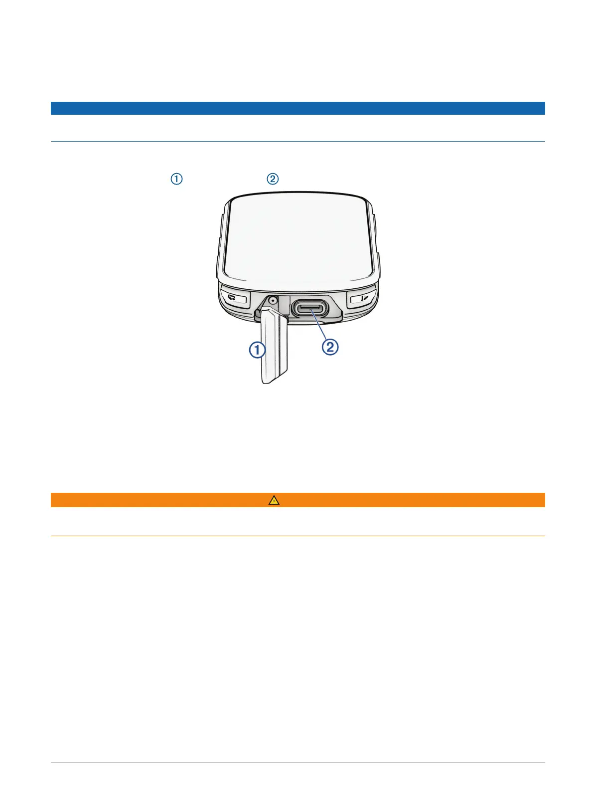 To prevent corrosion, thoroughly dry the USB port, the weather cap, and the surrounding area before charging or