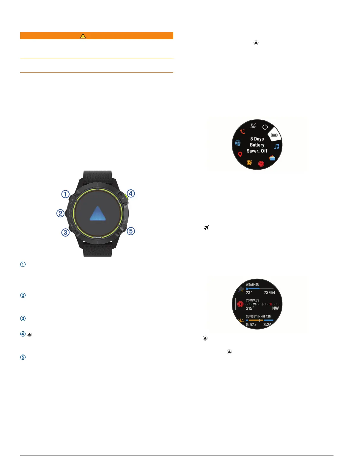 Press LIGHT to turn on the watch (Buttons, page 1).