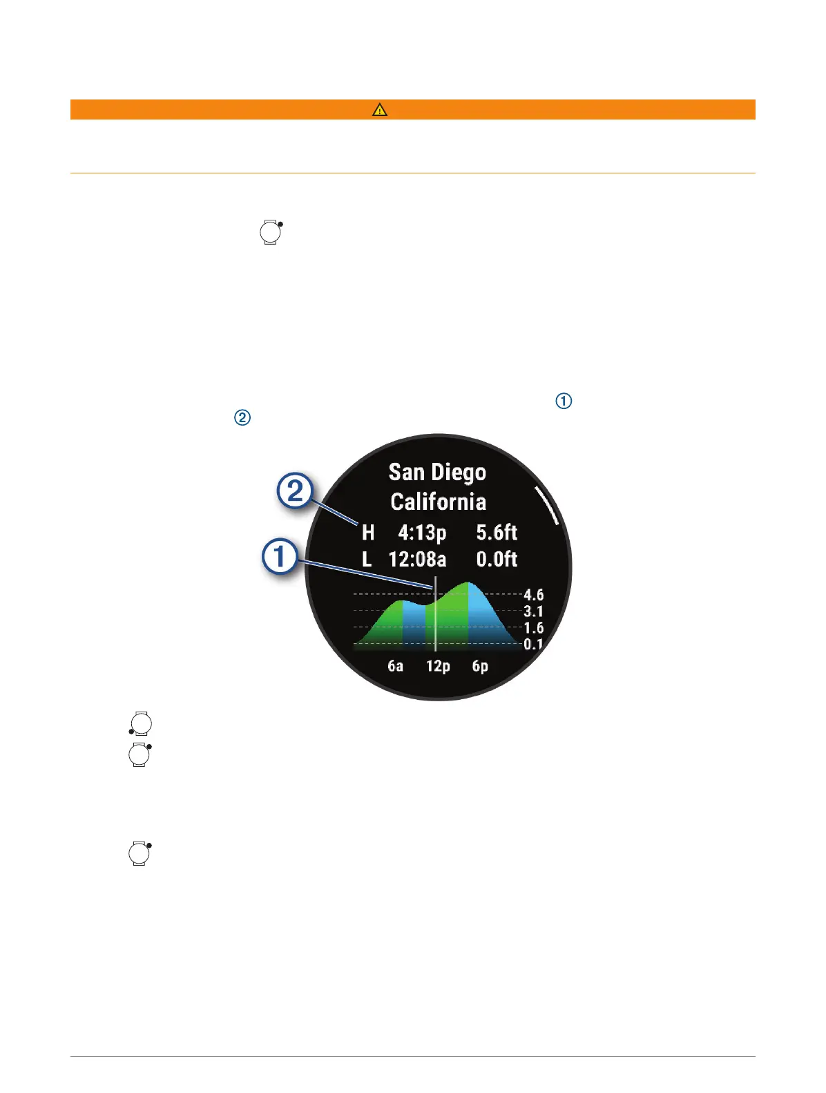 • To set an alarm to sound before the peak tide, select Til High Tide.