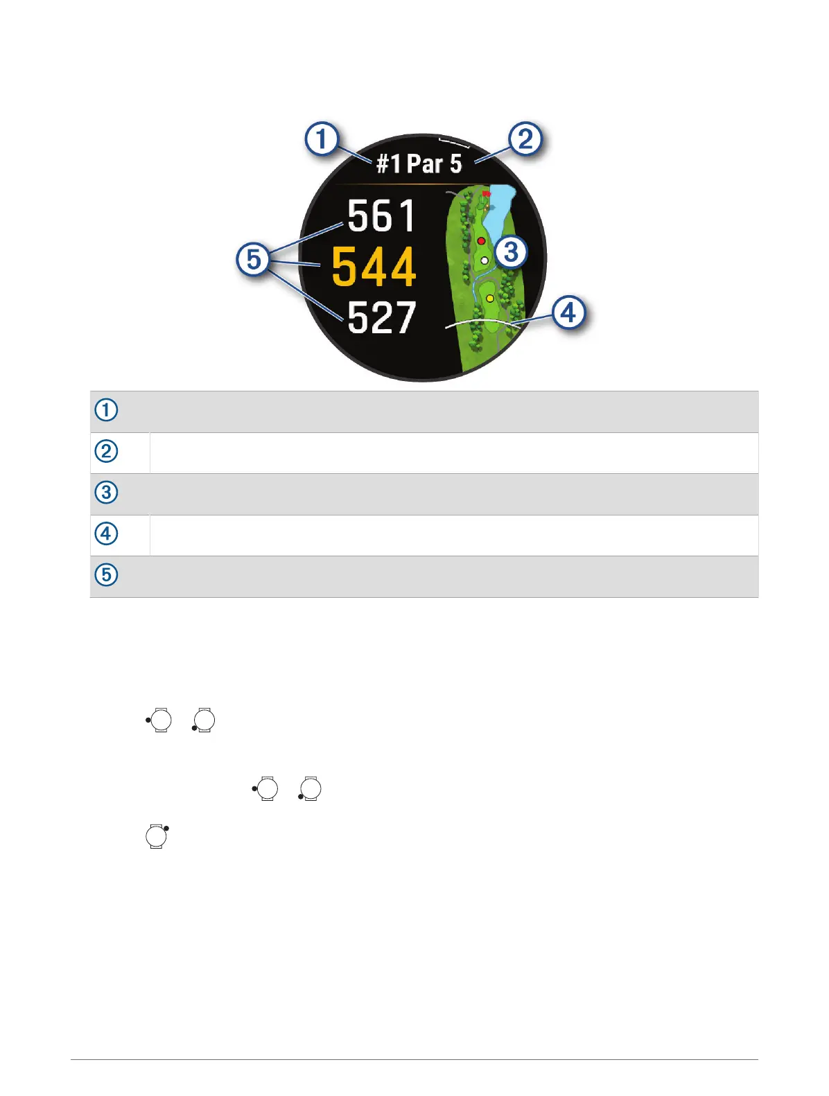 NOTE: Because pin locations change, the watch calculates the distance to the front, middle, and back of the