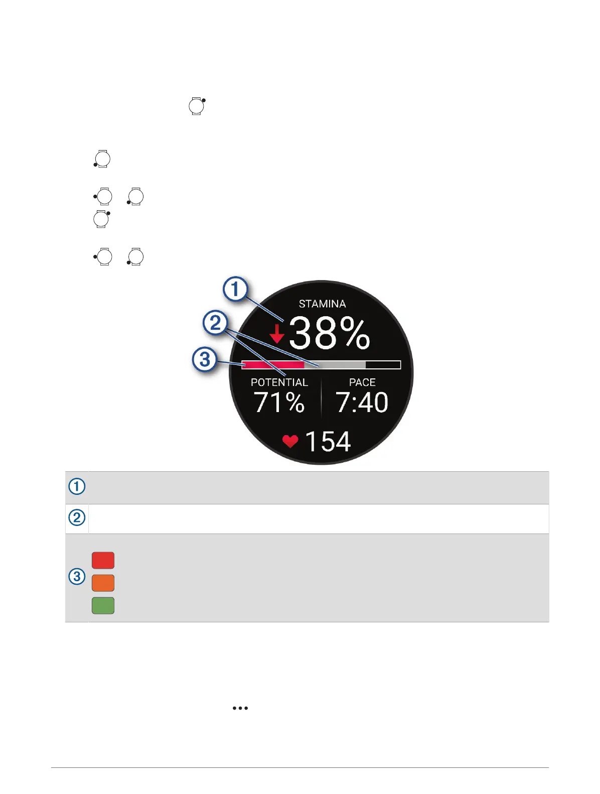 Primary stamina data field. Shows your current stamina percentage, distance remaining, or time