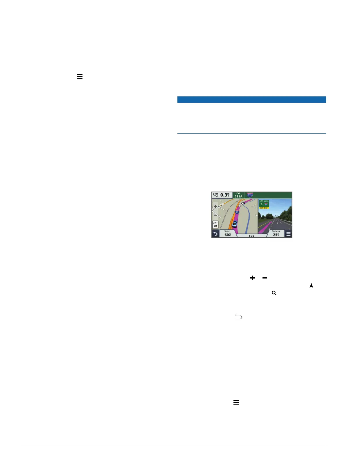 • To switch between North Up and 3-D views, select .
