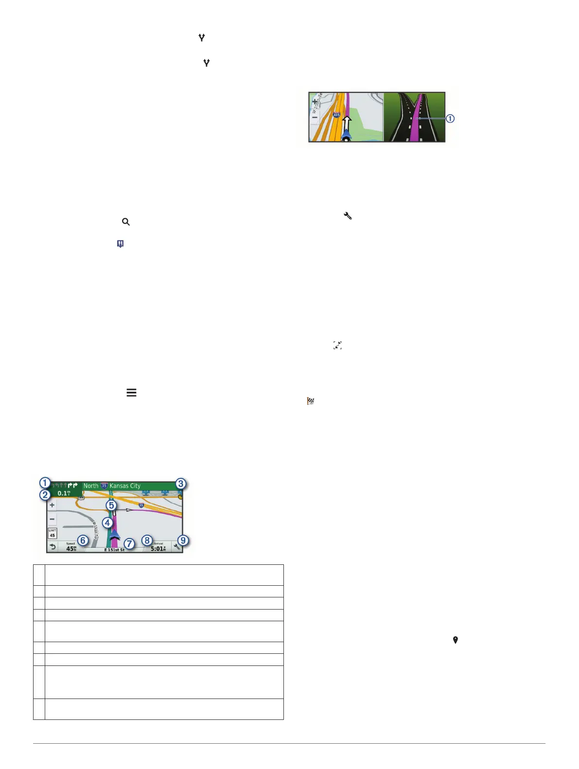 • To view upcoming turns and directions as you navigate,
