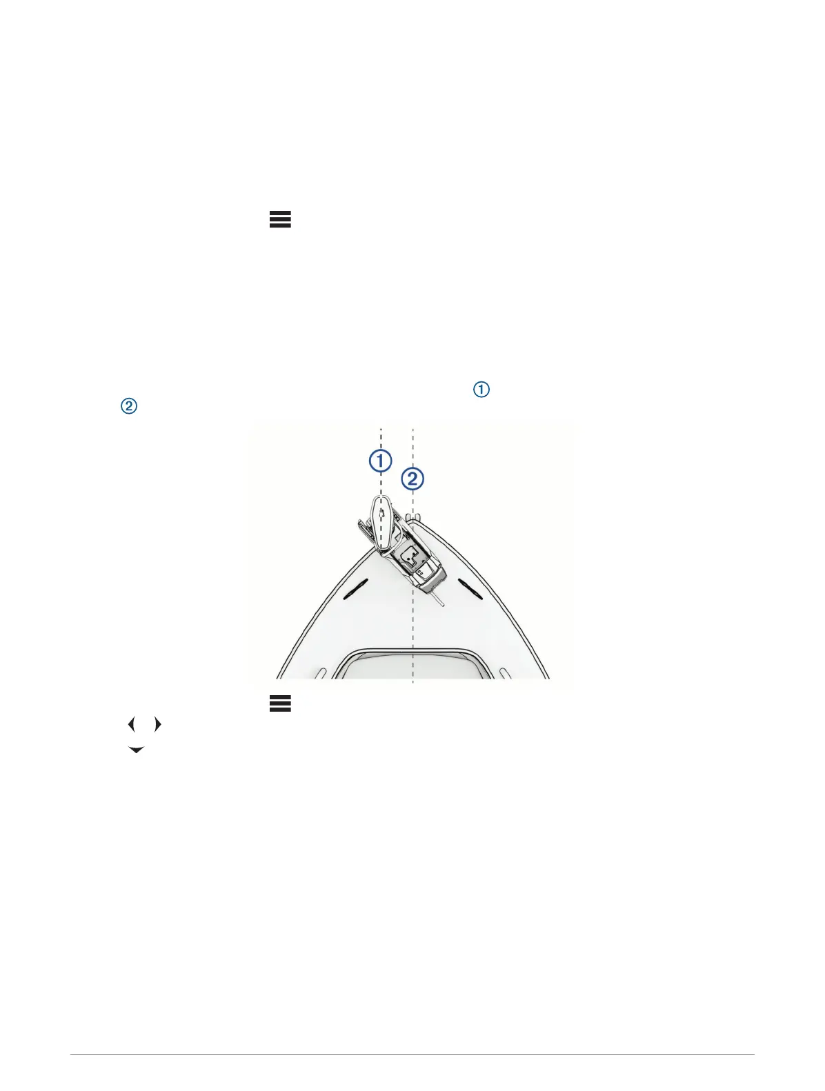 2 On the remote control, select > Settings > Trolling Motor > Calibrate > Bow Offset.