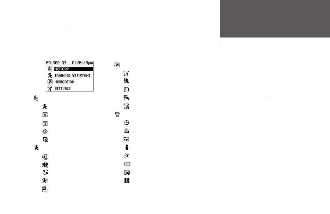 Your Forerunner 101 allows you to navigate through menus quickly and efficiently using