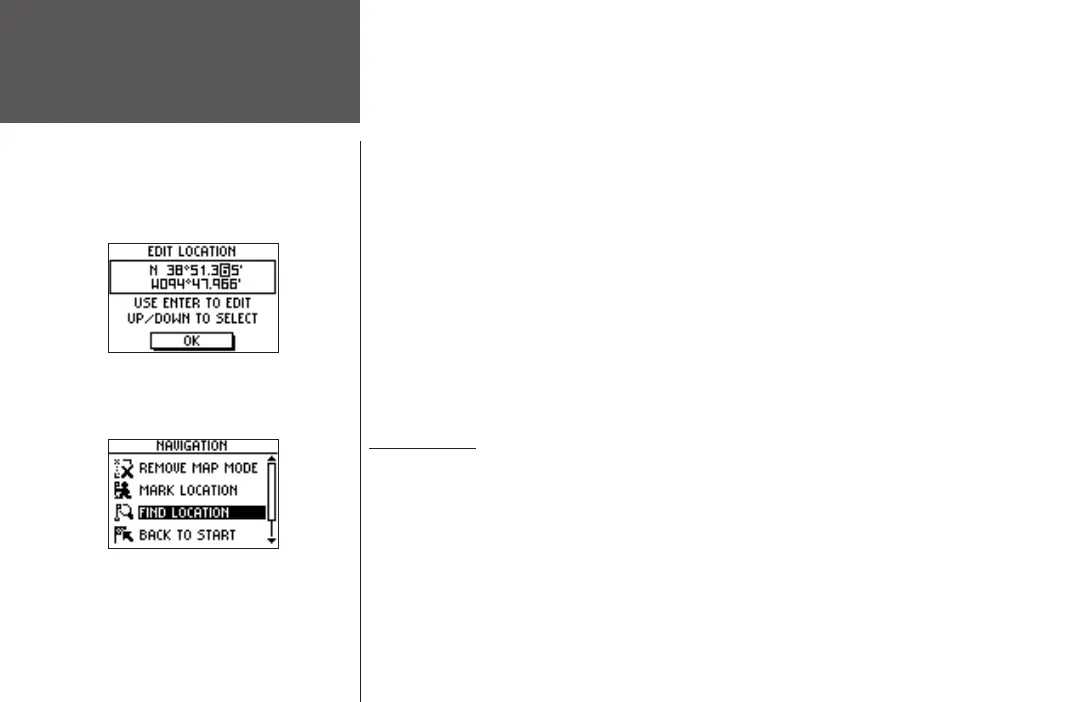 3. Press the DOWN button to highlight the location field (latitude/longitude) and press