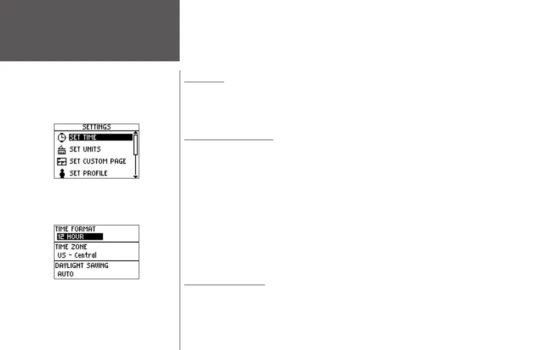 or UP button to highlight ‘SET TIME’. Press ENTER.