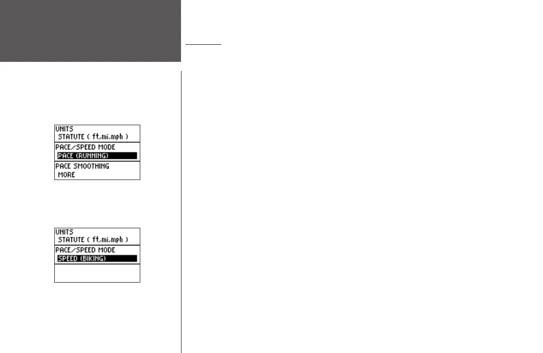 and speed. You must have the unit in ‘PACE’ mode to use Pace Smoothing.